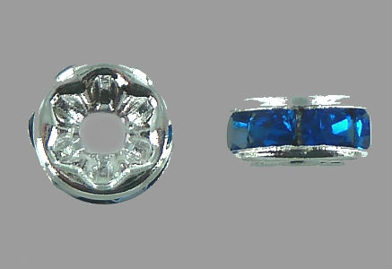 8MM Silver Plated Spacer Beads - Capri Blue - Sold in Pack of 10 Beads