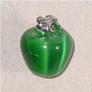 This fiber optic apple pendant has a silver plated loop.