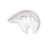 This nickel bear shaped concho has 2 slots and measures approximately 47MM wide.