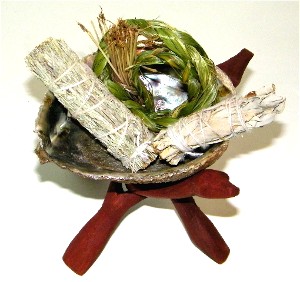 This Smudging Set includes an abalone shell, 8 inch shell stand, a sweetgrass braid, a mini california/white sage, and a mini grey sage.